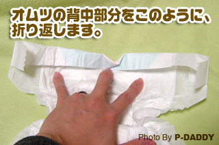 ↑↑↑オムツの背中側をこのように折り返します。