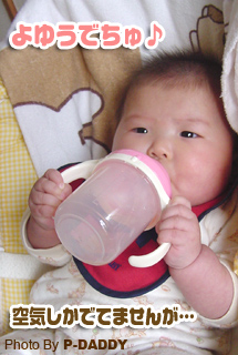 今日は自分で掴んで、口まで持って行き、くわえて飲めましたぁ♪