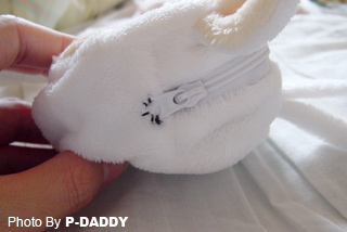 最後にチャックを閉めて、遊んでる最中に怪我をしたり、中身が飛び出して紙を食べちゃわないように、写真のようにジッパーを縫いつけました(^^;)